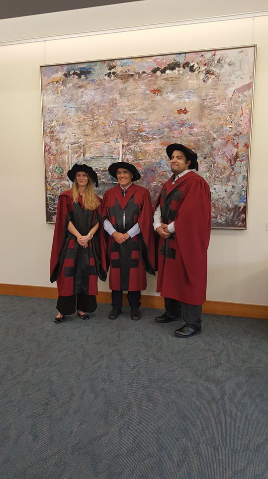 Nimnaka Indrajith Kahingalage, Elena Kokh and Nur Fatinazwa Mohd Faizal graduation day (11 February 2020)
